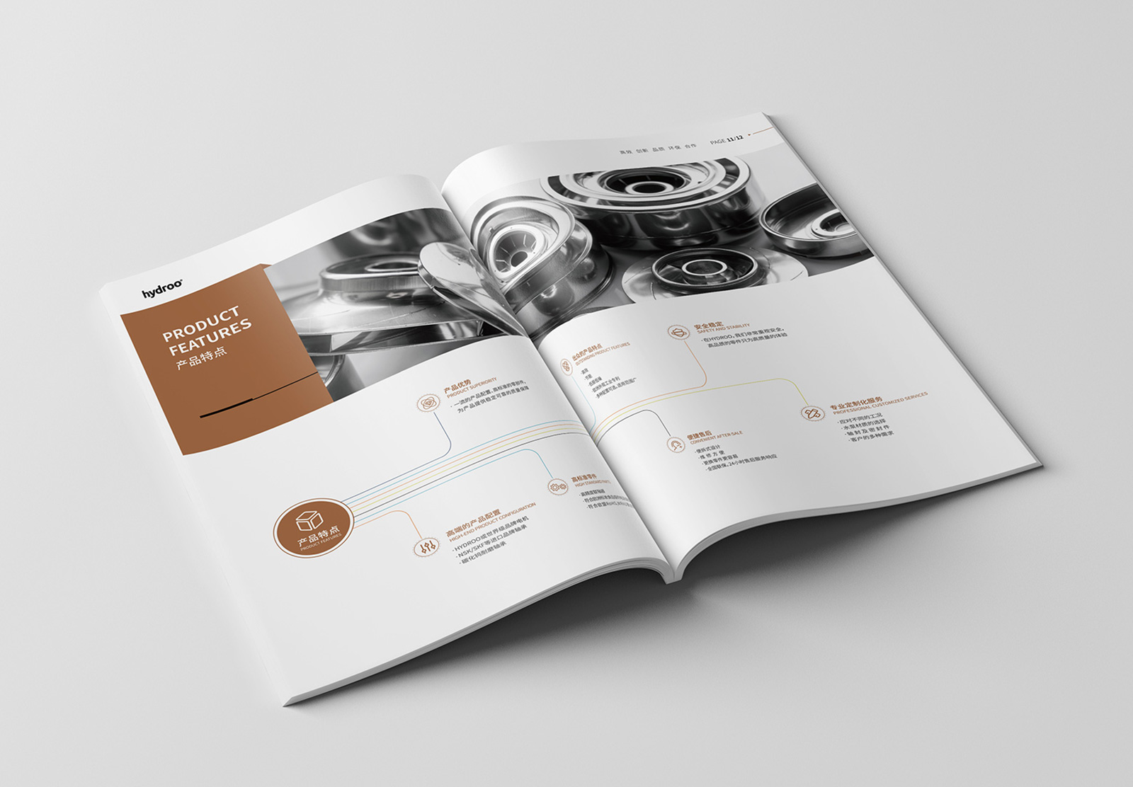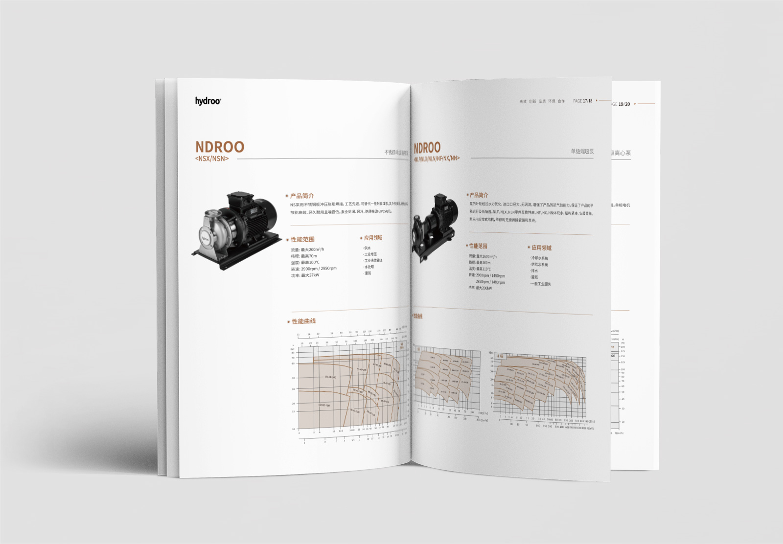 在溝通中,我們了解到浩卓總部位于西班牙巴塞羅那,運(yùn)營(yíng)分部設(shè)在中國(guó)杭州,為更好的展示浩卓企業(yè)綜合實(shí)力,在畫冊(cè)的設(shè)計(jì)上,以圖文結(jié)合的形式先對(duì)企業(yè)的基本情況進(jìn)行介紹,之后以表格、數(shù)據(jù),細(xì)節(jié)圖對(duì)各類產(chǎn)品進(jìn)行闡述,便于受眾快速了解產(chǎn)品參數(shù)及規(guī)格,最后展示浩卓泵業(yè)的經(jīng)典案例,凸顯企業(yè)突出的業(yè)績(jī)。另外,對(duì)畫冊(cè)的封面做了創(chuàng)意設(shè)計(jì),其主畫面是一個(gè)地球,分為上下兩個(gè)部分,上部分以線稿的流程圖表現(xiàn)出的一站式解決方案;下部分則是半個(gè)地球,體現(xiàn)企業(yè)致力為全球提供各類高端泵產(chǎn)品和泵解決方案。