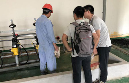 9月1日,盡管正值周末,考慮到客戶方面的需要,聯測技術人員羅工、高工、劉工一行人早早地驅車前往上海,從早上九點一直忙碌到中午一點多,為客戶完成流量計安裝、接線調試的全過程。